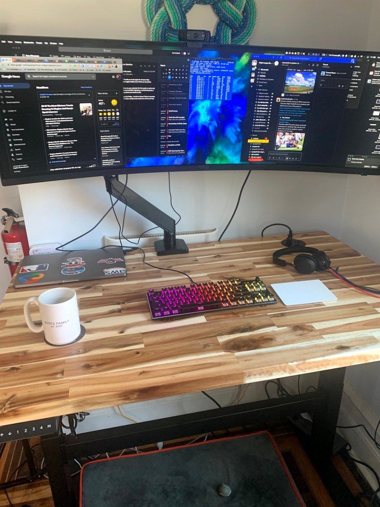 As spring nearly arrives, I thought it was a good time to upgrade my desk, get some more standing time in — and treat work as a task: get it done, and get away from it. The standing desk seems to already set that in motion for me. Went all out with the Uplift desk customization — added grommets, power plugs, clamp on usb outlets, and the high-end controls.